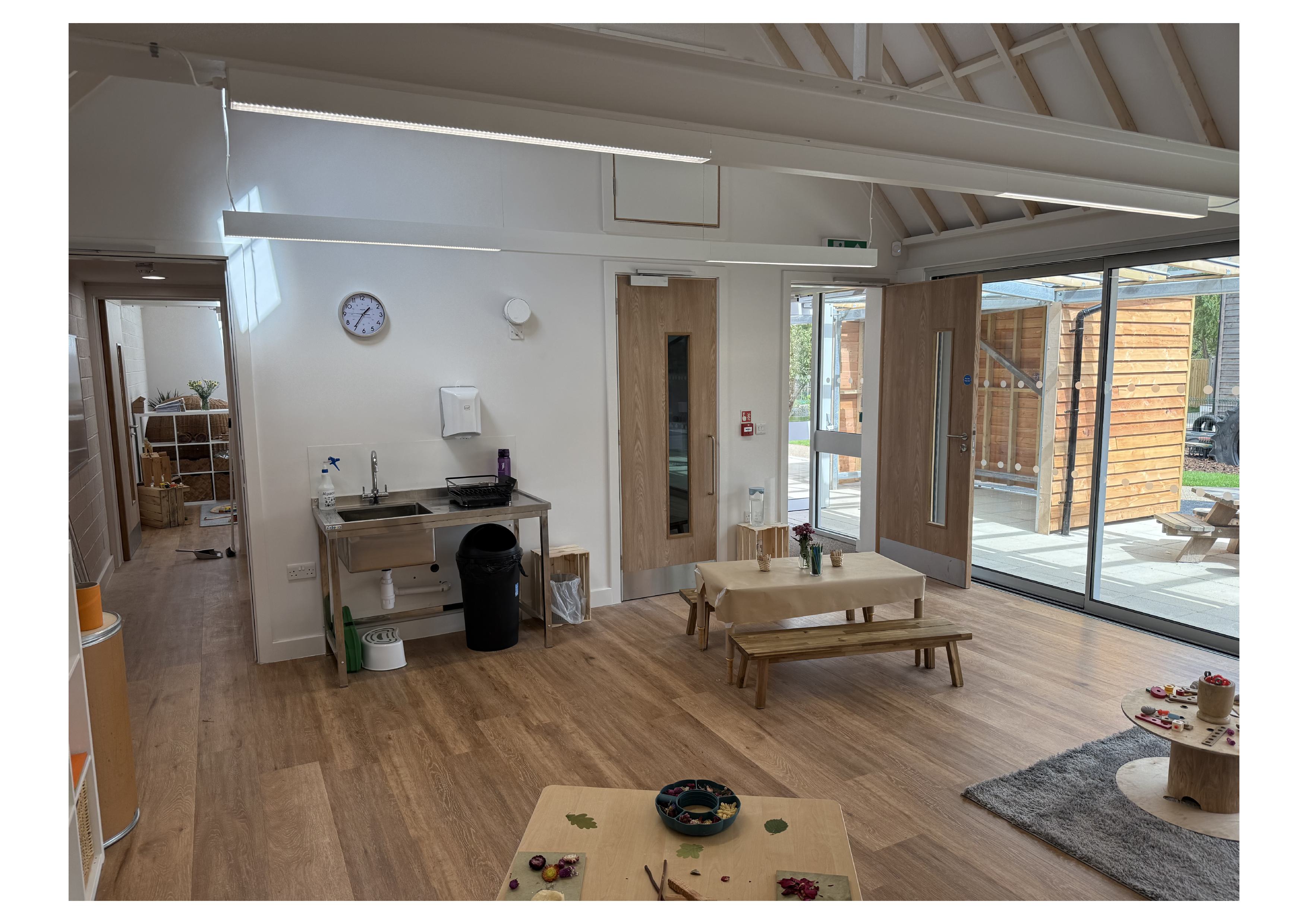 Designed by Hulle Architecture and Design, the structures are single storey with vaulted ceilings and large sliding doors to one elevation, with both buildings facing onto a new landscaped play area which serves both the new builds and the existing nursery. A glazed canopy lines the facades and the buildings are clad with larch, making the project both aesthetically pleasing and highly practical. We wish Fiona, Mark and the team success with their new facility.